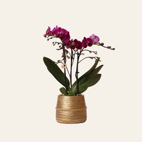Kolibri Company - Set di piante Groove oro | Set con orchidea Phalaenopsis Amabilis bianca Ø9cm e pianta grassa Succulenta Aloe Brevifolia Ø6cm | incl. coprivaso dorati in ceramica